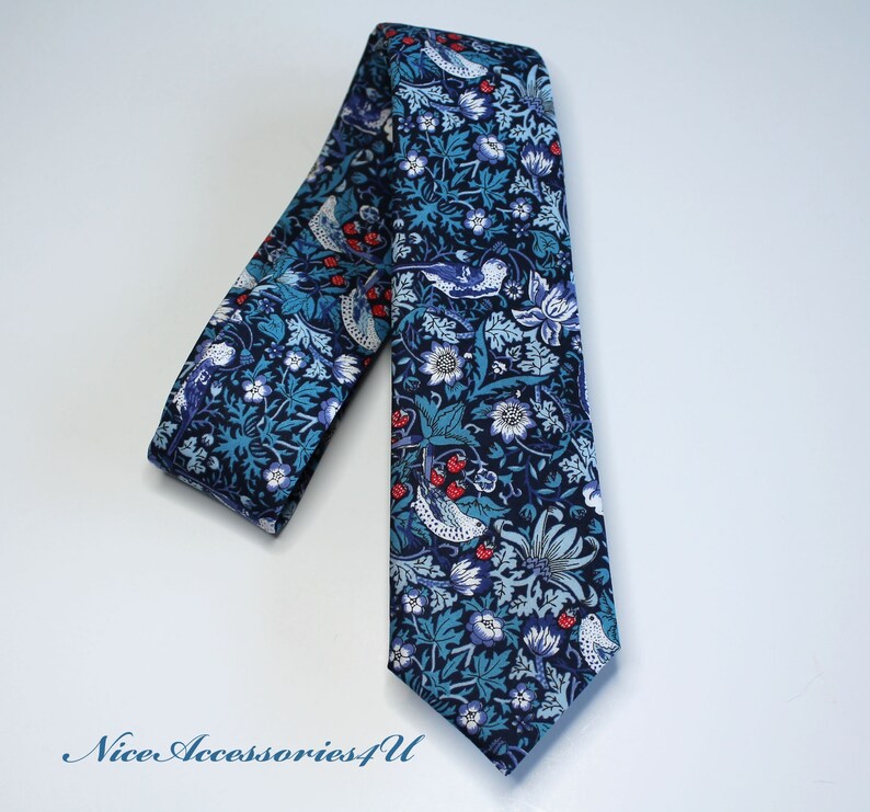 Mens Tie, Blue and Red Neck Tie, Liberty Tie, Liberty of London William Morris Strawberry Thief