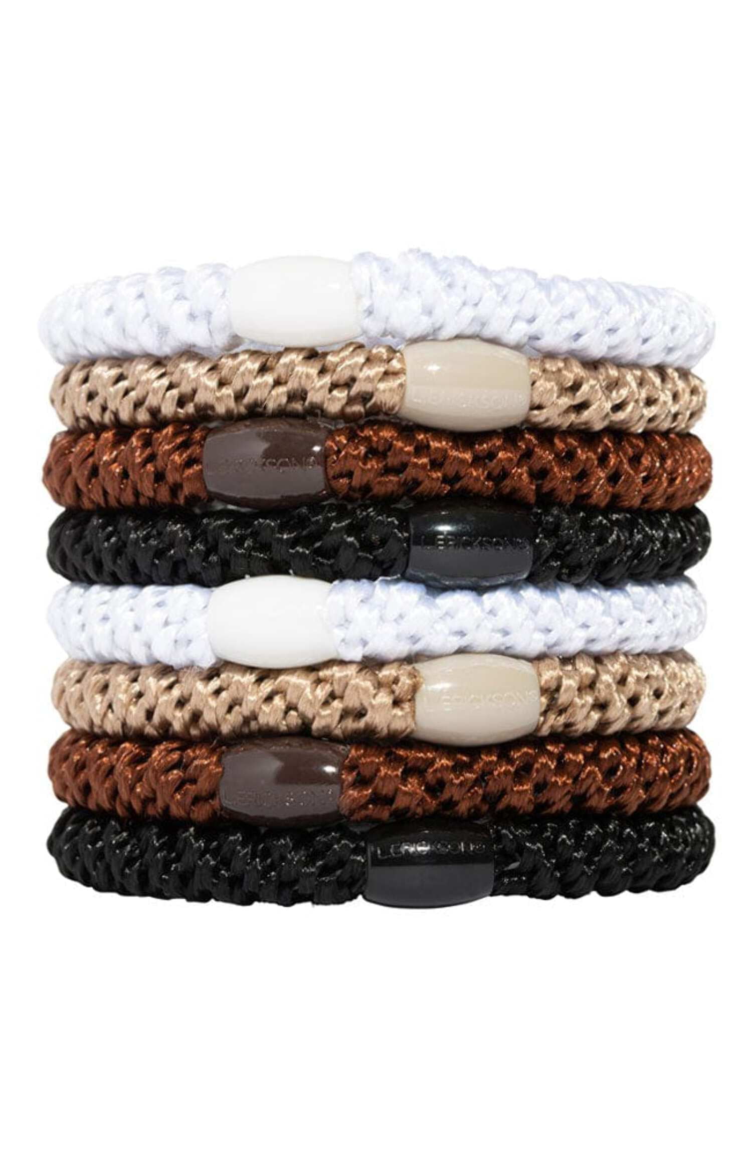 L. Erickson Grab & Go Pony - Neutral - 8 Pack Ponytail Holder Hair Ties - Brown Black White Mix grab and go pony hair ties