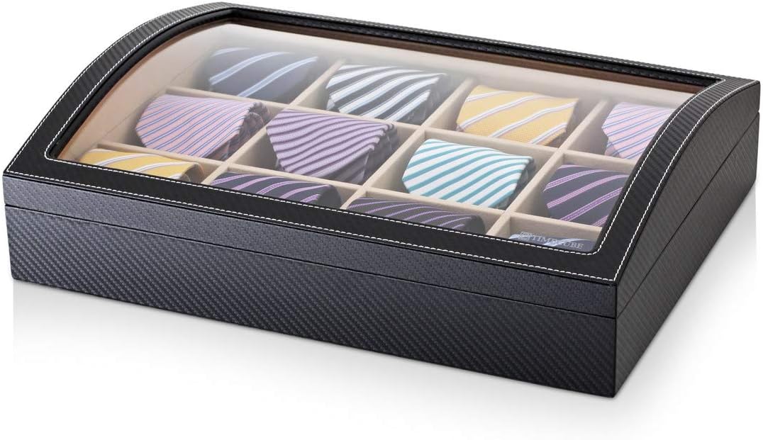 9 Tie Storage Box for Men Tie Set (Carbon PU + Black) mens tie storage box