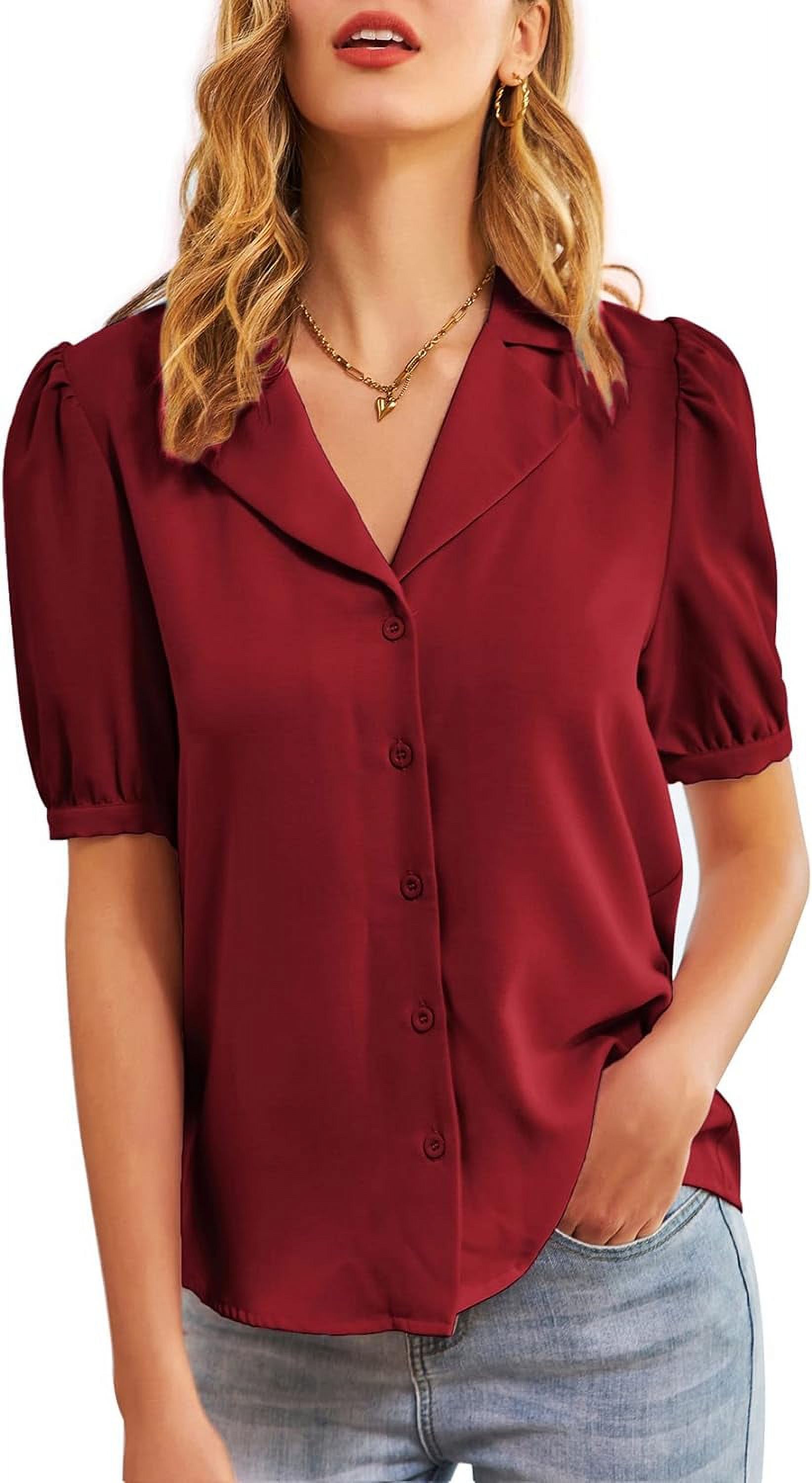 Women's Tie Button Shirt Casual Short Sleeve Shirt Top V Neck Shirt White - Walmart.com womens white button down tie front shirt