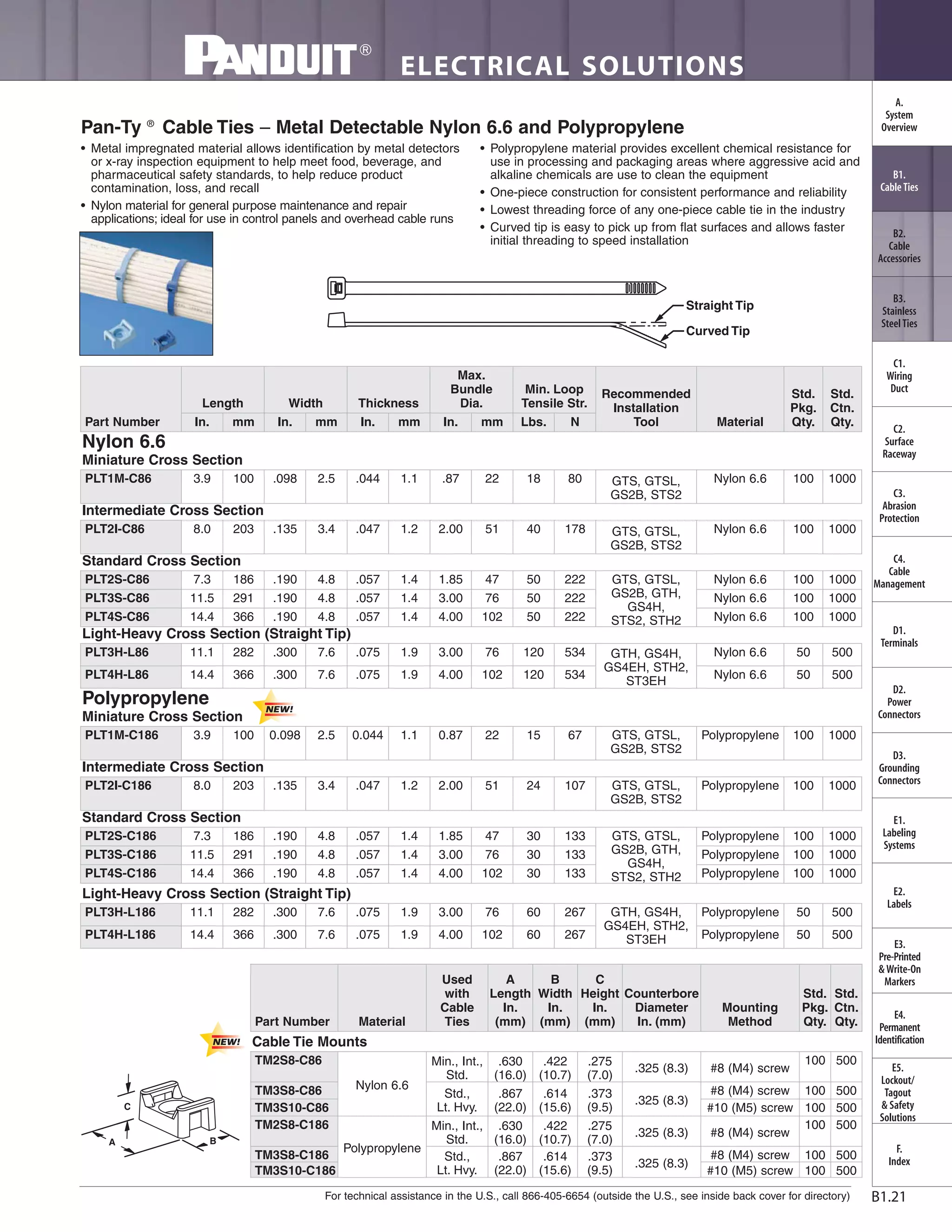 PANDUIT METAL DETECTABLE CABLE TIES, PANDUIT CABLE TIES, CHEMICAL RESISTANT CABLE TIES FOOD PROCESSI