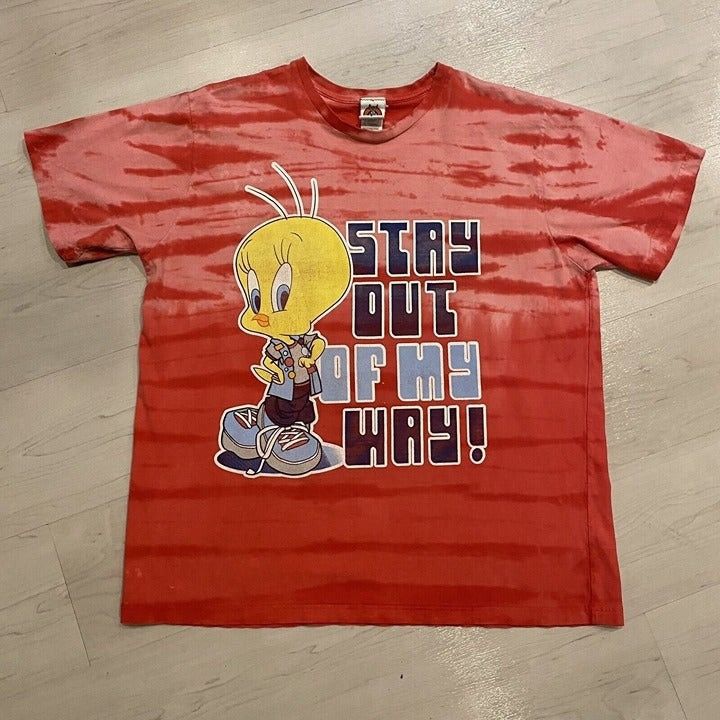 Vintage Vintage striped tie dye looney tunes tweety bird stay out of | Grailed looney tunes tie dye shirt