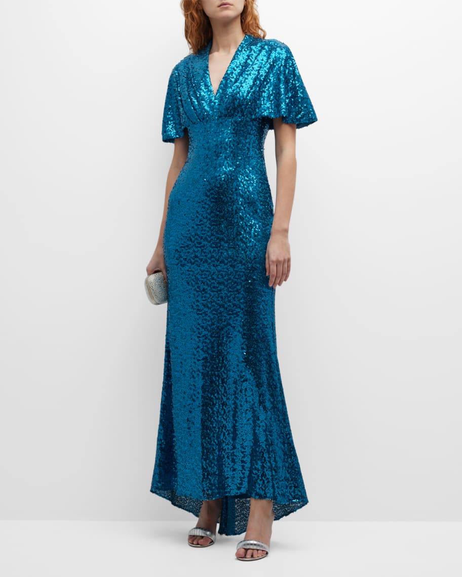 Badgley Mischka Collection Empire-Waist Dolman-Sleeve Sequin Gown | Neiman Marcus badgley mischka sequin tie waist blazer