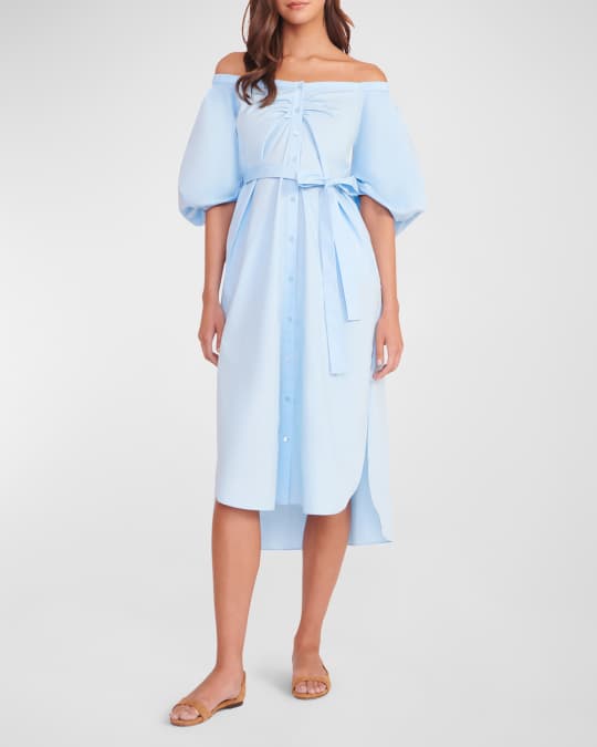 STAUD Reese Tie-Belt Button-Front Poplin Midi Dress | Neiman Marcus maternity tie belt button front midi dress