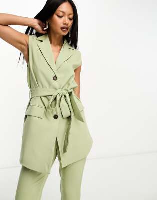 In The Style sleeveless tie waist blazer co-ord in sage | ASOS sleeveless tie waist blazer