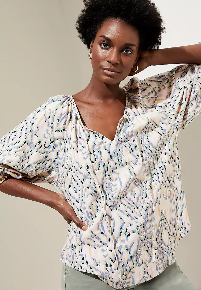 Jual Marks & Spencer Linen Rich Printed Tie Neck Blouse Original 2025 | ZALORA Indonesia marks and spencer tie neck blouse