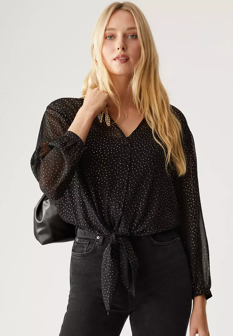 Jual Marks & Spencer Sparkly Polka Dot V-Neck Tie Front Blouse Original 2024 | ZALORA Indonesia marks and spencer tie neck blouse