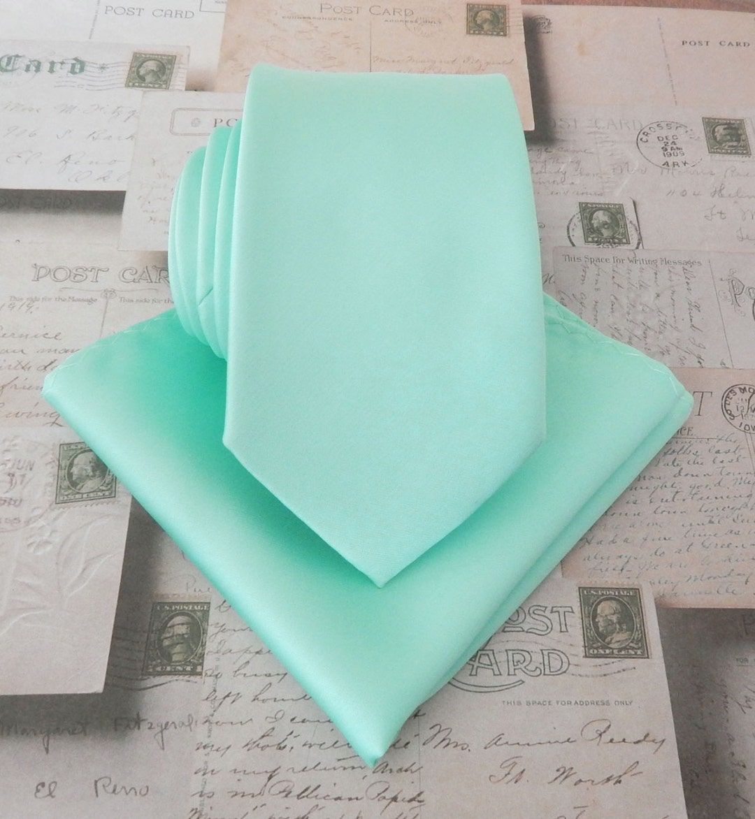 Pastel Mint Green Mens Tie With Matching Pocket Square | Etsy pastel mint tie