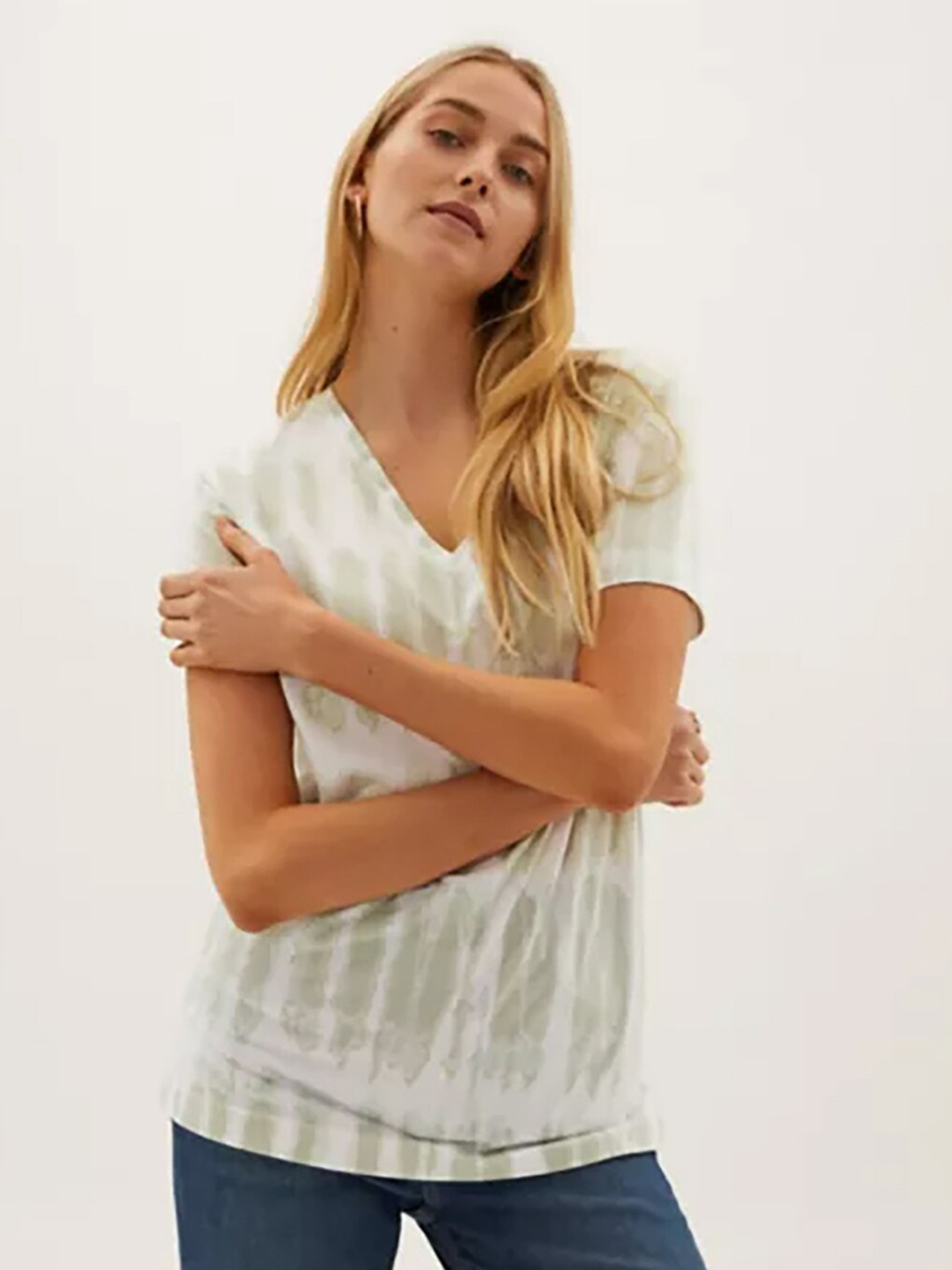 Buy Marks & Spencer Women Khaki & Cream Coloured Tie And Dye V Neck T Shirt - Tshirts for Women  marks and spencer tie dye