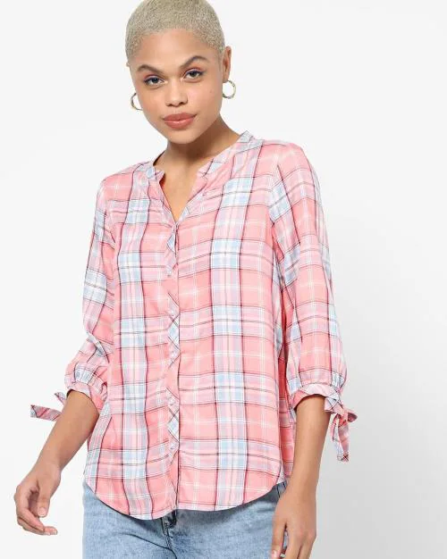 Buy Checked Shirt with Tie-Up Sleeve Hems Online at Best Prices in India - JioMart. checked shirt with tie up