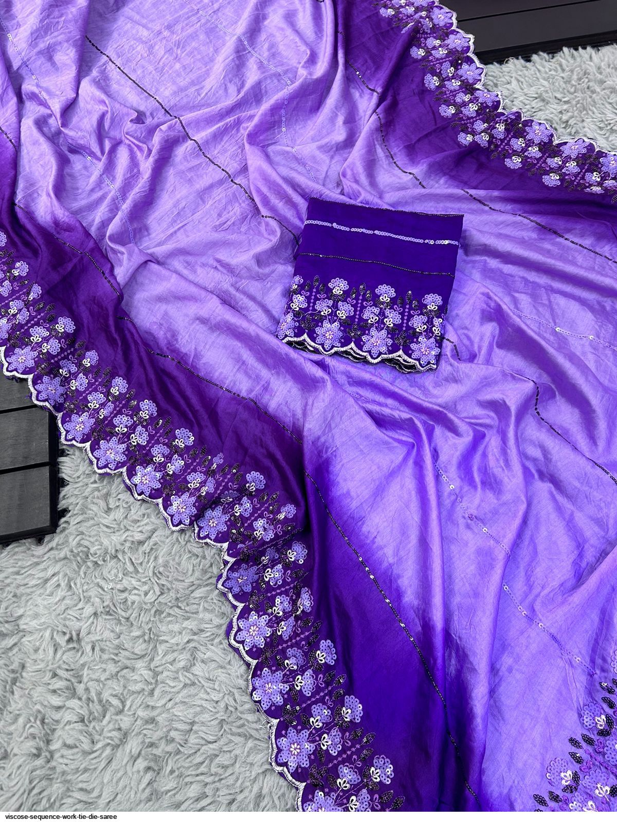 Beautiful Viscose Sequence Work Tie Nd Die Saree With Sequence Lace Border. - VASTRANZO sequence tie