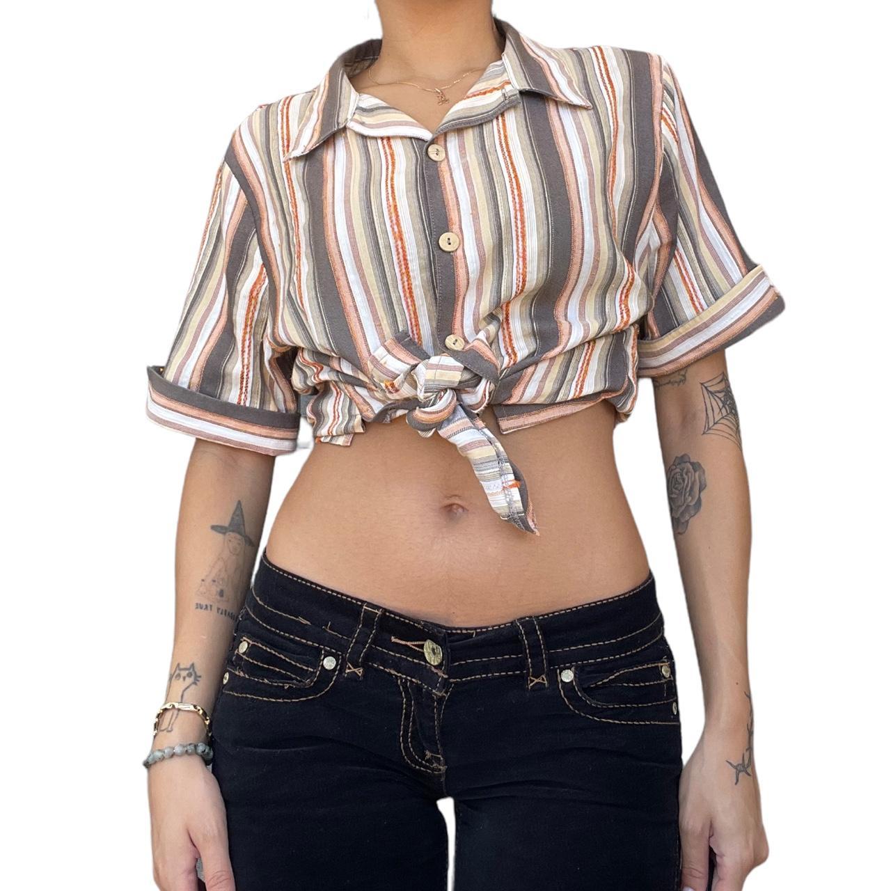 Vintage striped shirt button up can be tied as a - Depop tied button up shirt