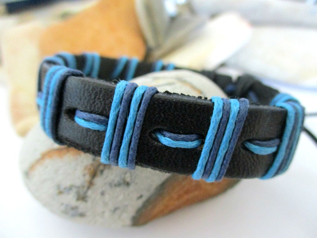 Leather Tie Bracelet Set Mens Bracelets Black Leather - Etsy mens tie bracelets