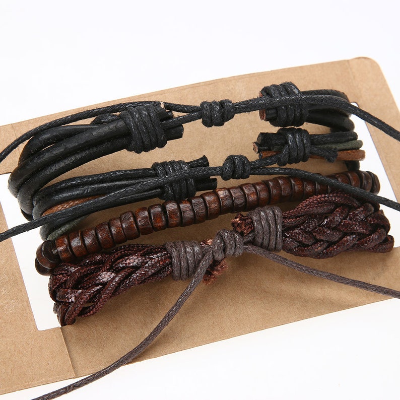 Men's Leather Bracelet Set Leather Bracelet Men - Etsy mens leather tie up bracelet
