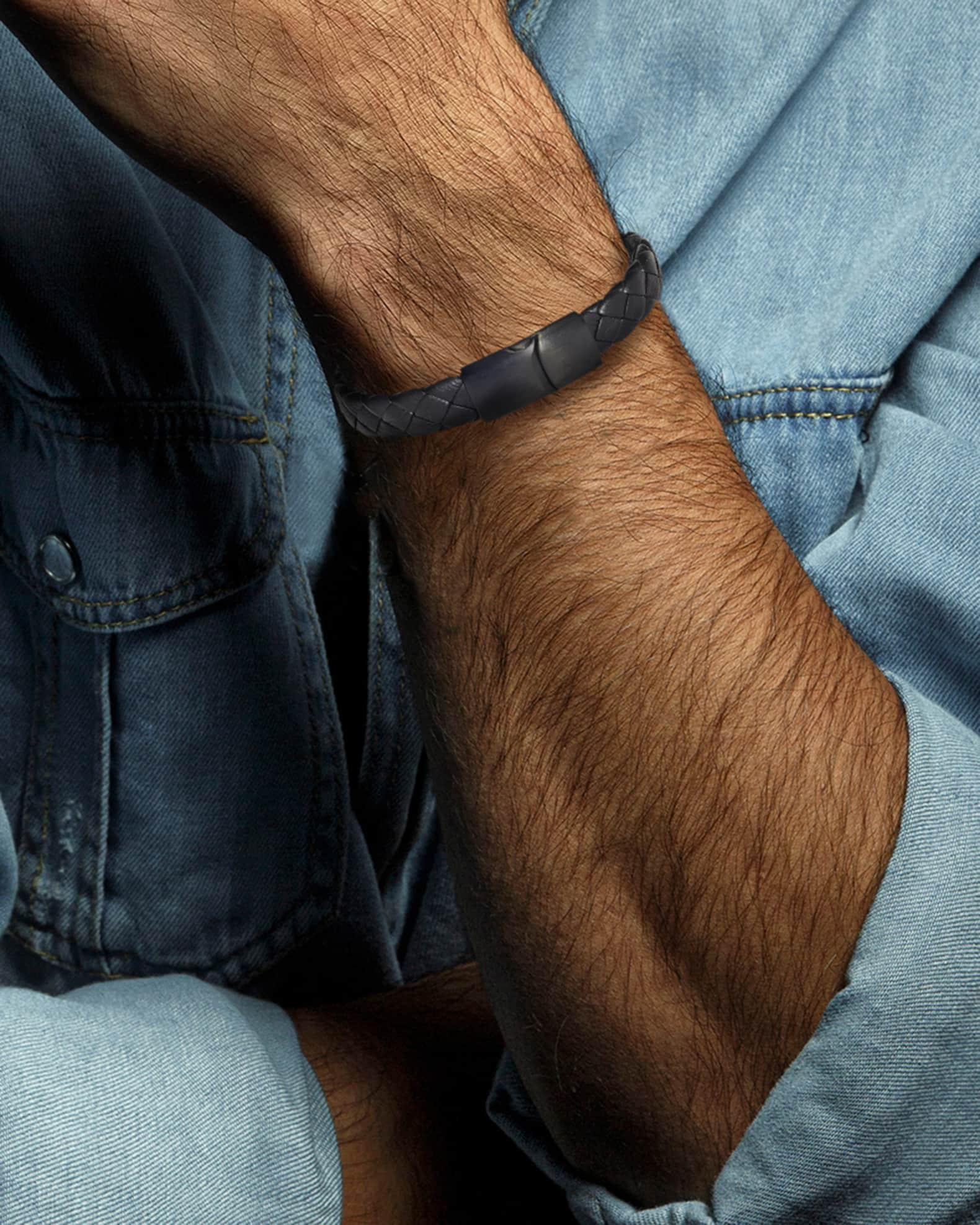 Link Up Men's Braided Leather Bracelet | Neiman Marcus mens leather tie up bracelet