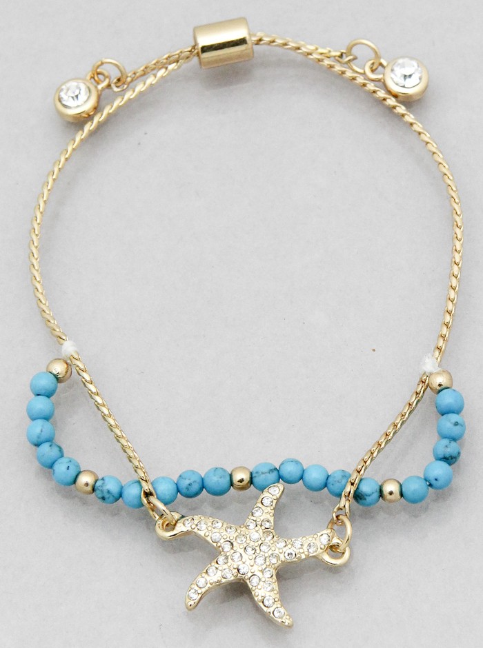 PAVE STARFISH BEADED PULL TIE BRACELET - Bracelets - Bracelet Room beaded tie bracelet