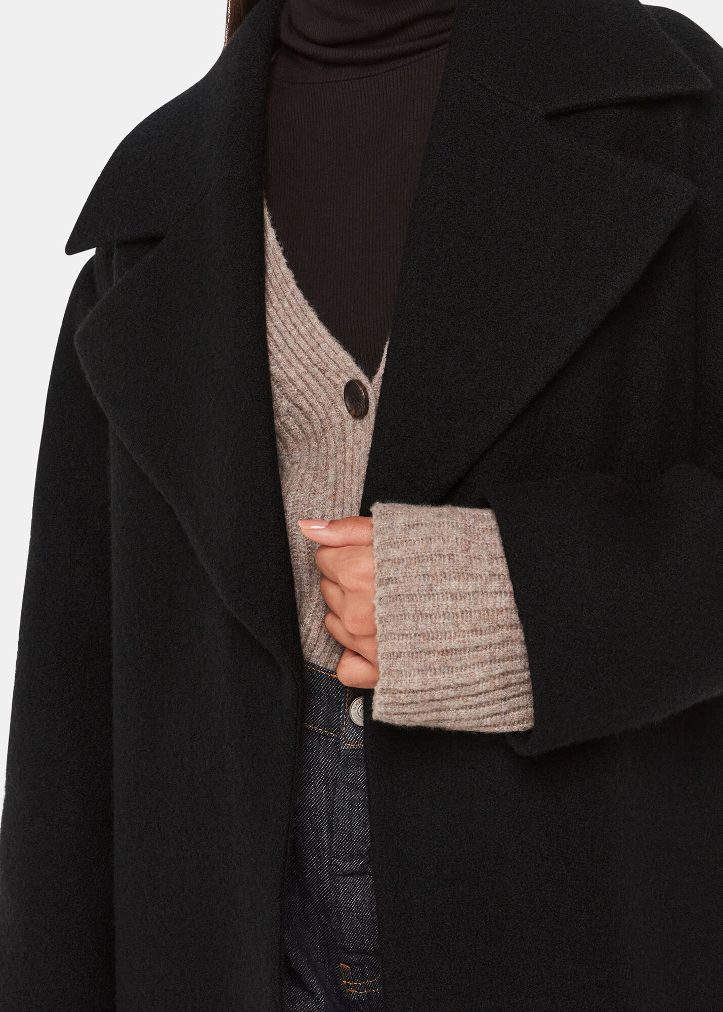 Black Tie Waist Wool Coat | WHISTLES whistles tie waist wool coat