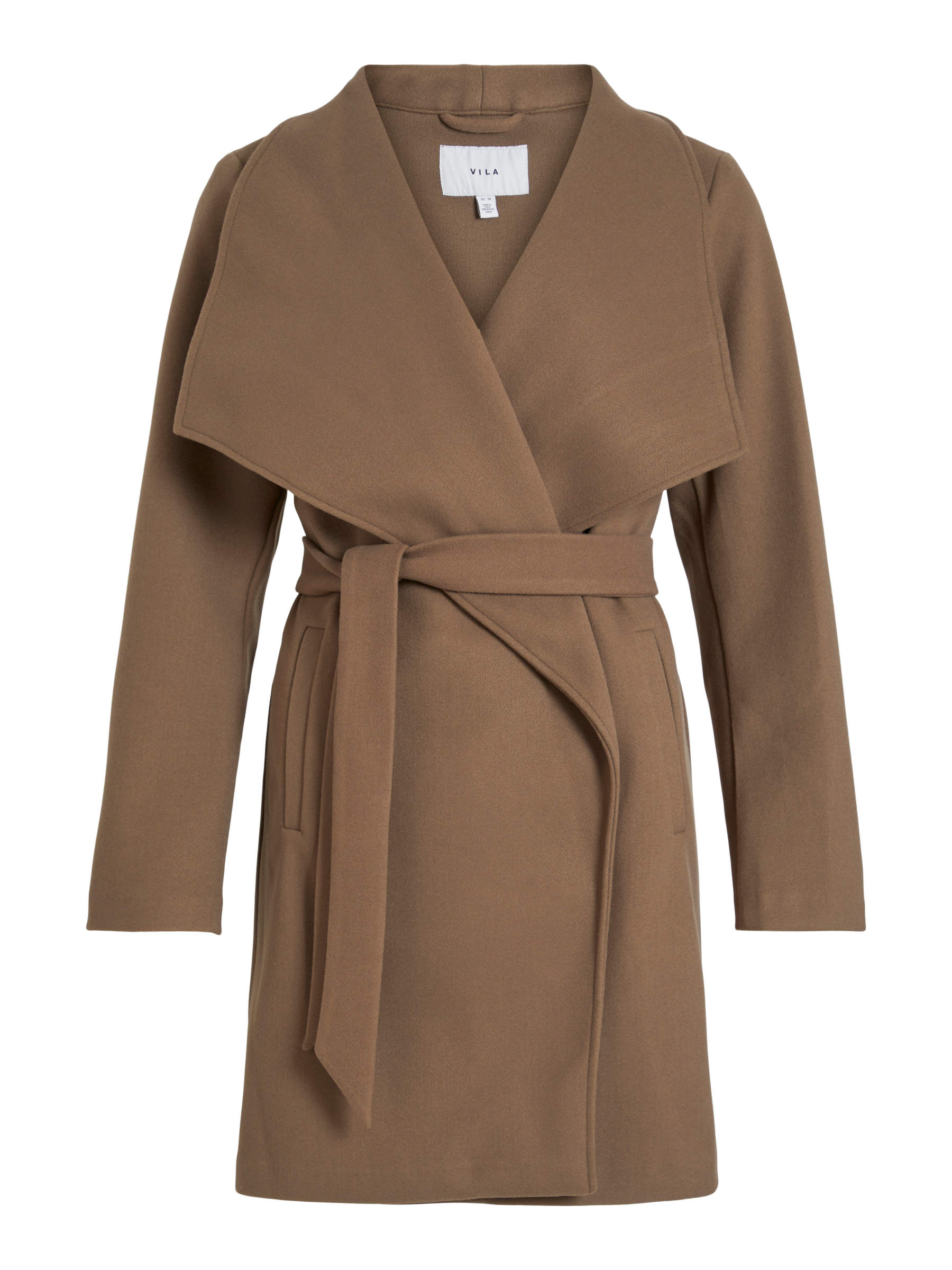 TIE WAIST COAT (Brown) | Vila Online Shop petite tie waist coat