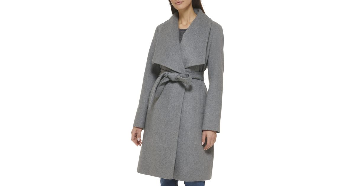 Cole Haan Wool Blend Belted Wrap Coat in Gray | Lyst cole haan tie waist wool & alpaca blend wrap coat