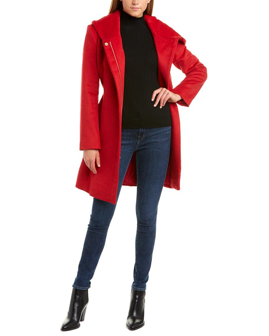 Cole Haan Belted Asymmetrical Zip Wool-blend Wrap Coat in Red - Save 1% - Lyst cole haan tie waist wool & alpaca blend wrap coat