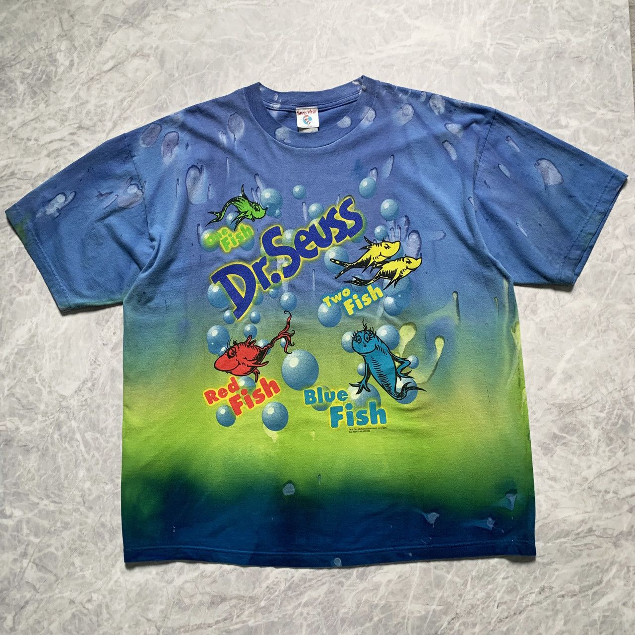 Vintage VTG 90s DR.SEUSS ONE FISH TWO RED BLUE TIE-DYE T-SHIRT | Grailed dr seuss tie dye shirt