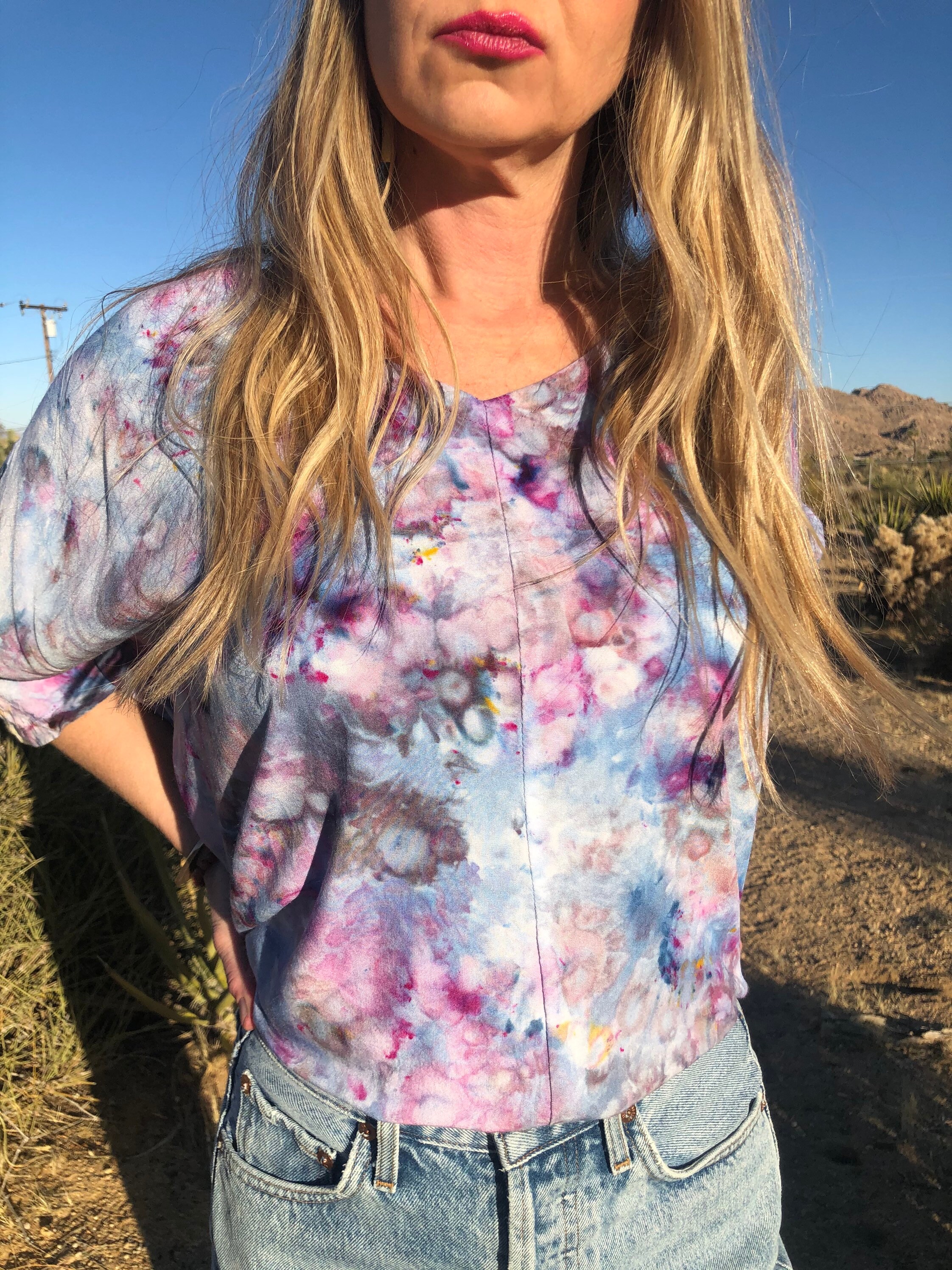 Unique Tie Dye V-Neck Tee womens tie dye v neck tee