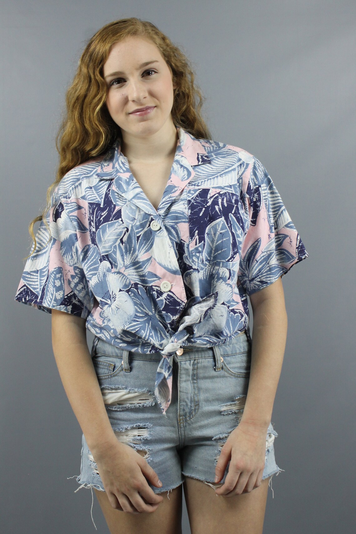 Hawaiian Blouse Hawaiian Shirt Tie Front Blouse Vacation | Etsy hawaiian shirt tie