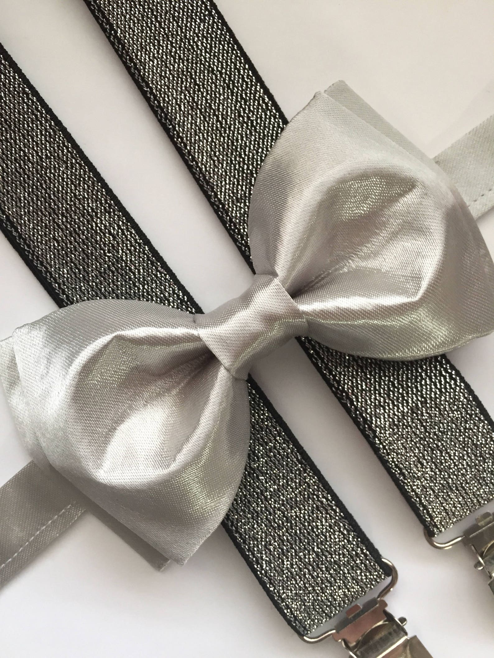 Silver Bow Tie and Silver Glitter Suspenders Set. /adults/ | Etsy sparkly silver bow tie