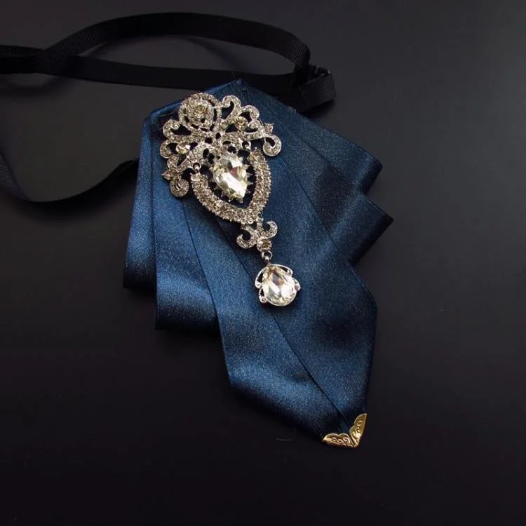 Fashion Men Women Ribbon Bow Tie For Rhinestone Crystal Brooch Pin Luxury Wedding Adjustable rhinestone bowties