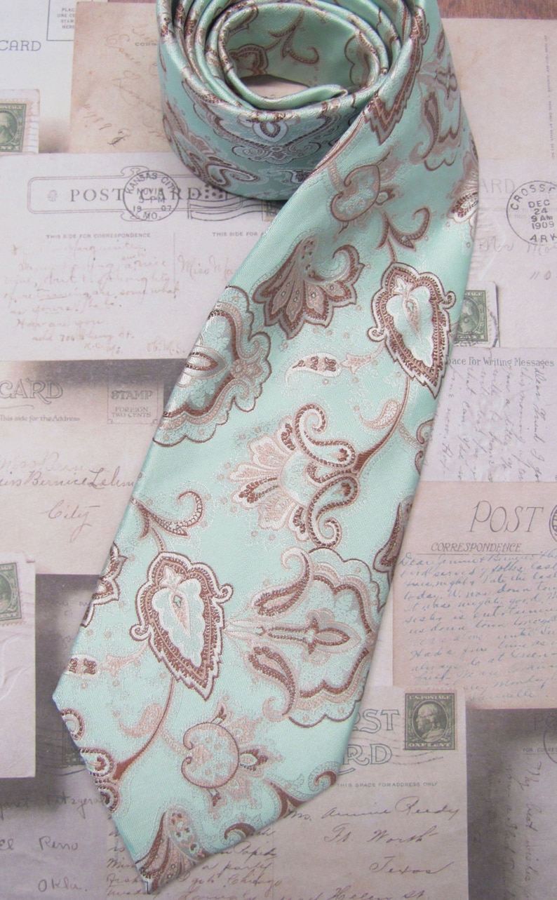 Mens Ties Pastel Mint Brown Paisley Mens Silk Necktie Wedding - Etsy | Pastel mint, Wedding ties mens pastel ties