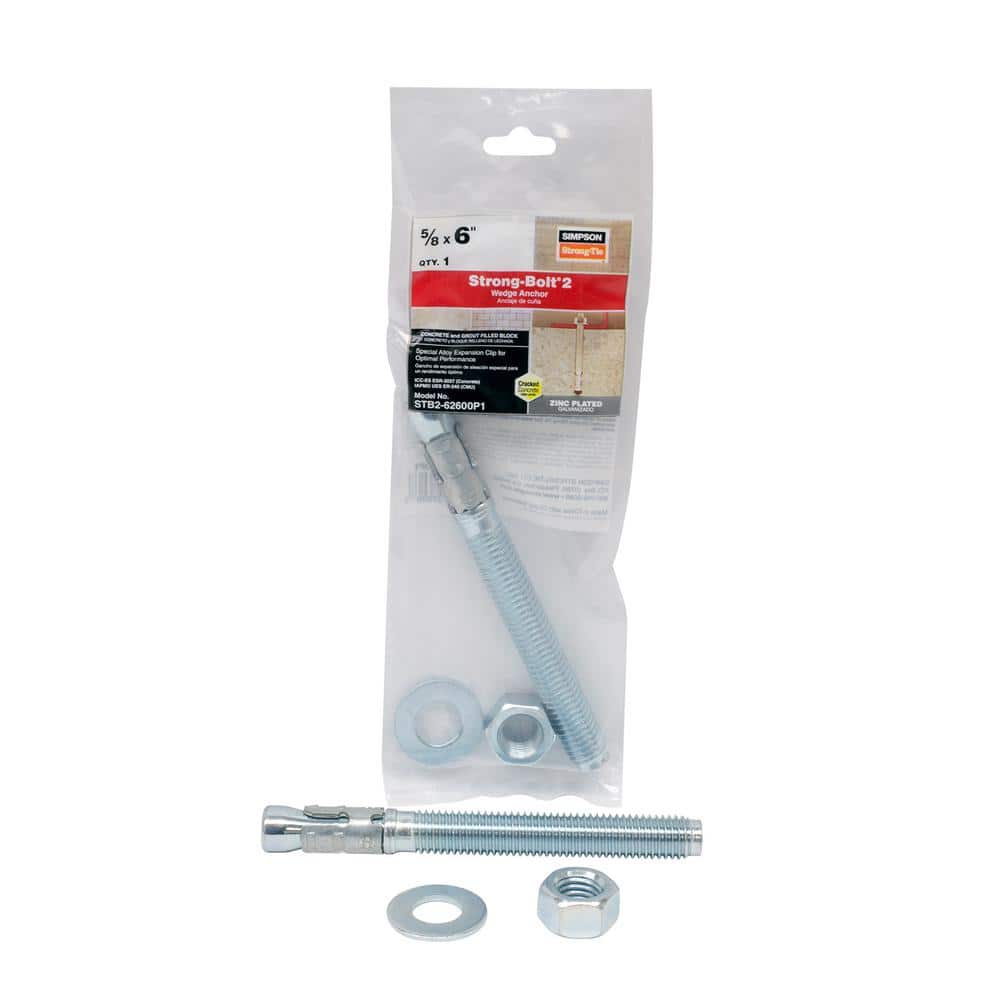 Simpson Strong-Tie Strong-Bolt 5/8 in. x 6 in. Zinc-Plated Wedge Anchor STB2-62600P1 - The Home simpson strong tie 5 8 anchor bolt
