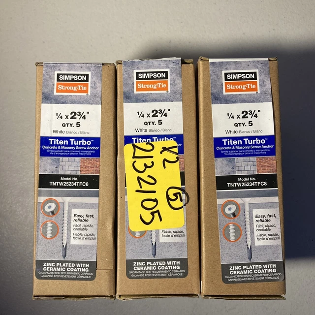 SIMPSON STRONG TIE Titen Turbo Concrete Anchors 1/4â x 2-3/4â Masonry Qty 120 £15.36 - PicClick UK simpson strong tie titen anchors