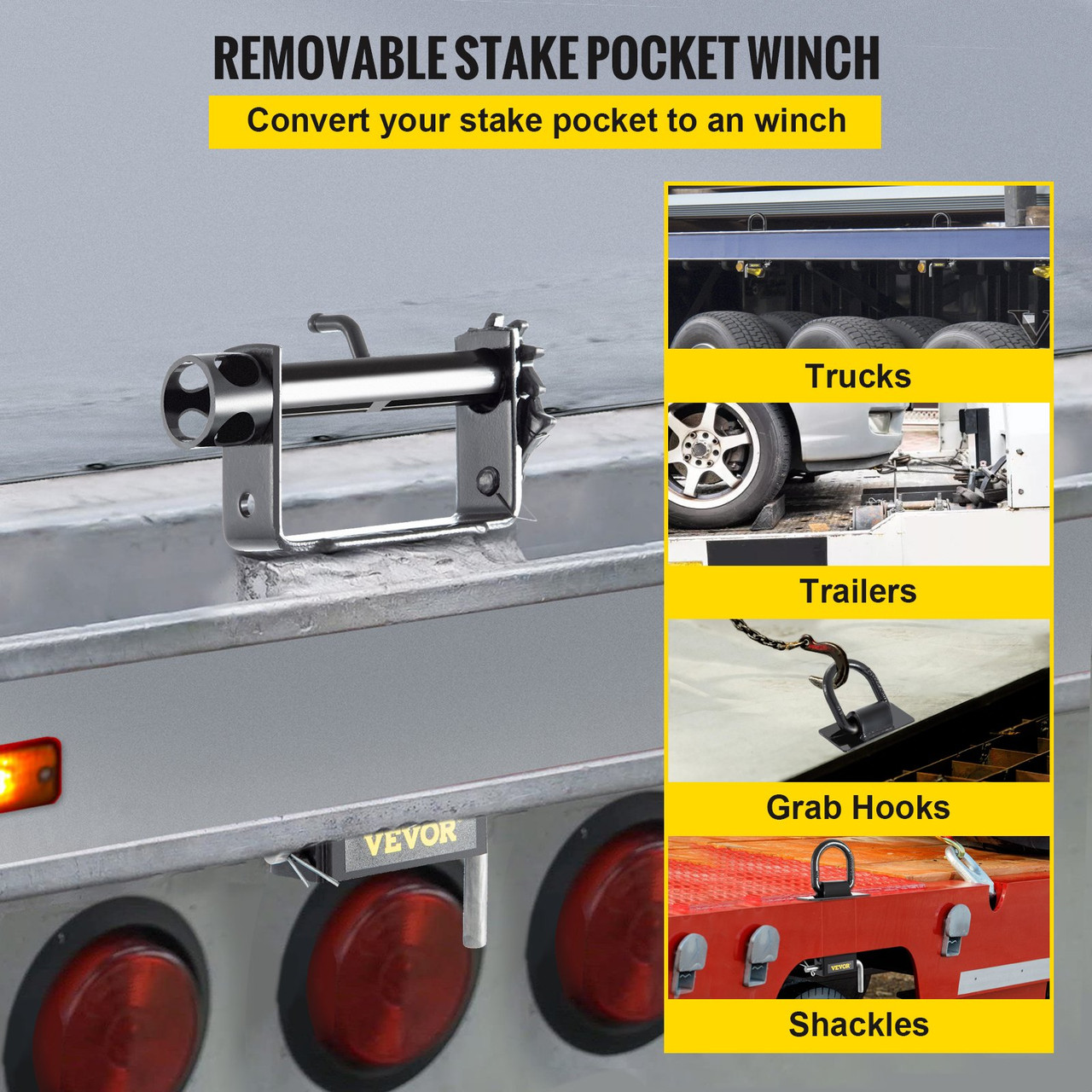 Stake Pocket Winch 4 Removable Stake Pocket Tie Down 16200Lb Truck Trailer utility trailer stake pocket tie downs