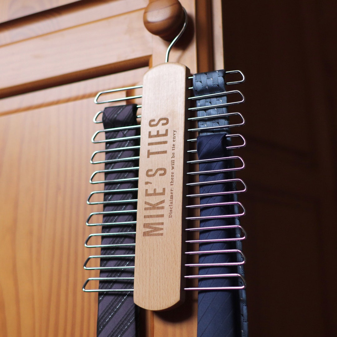 Personalised Tie Hanger Wooden Tie Rack Organiser Holder | Etsy personalised tie rack