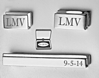 Personalized Cufflinks Engraved Tie Clip Monogrammed | Etsy monogrammed tie clip and cufflinks