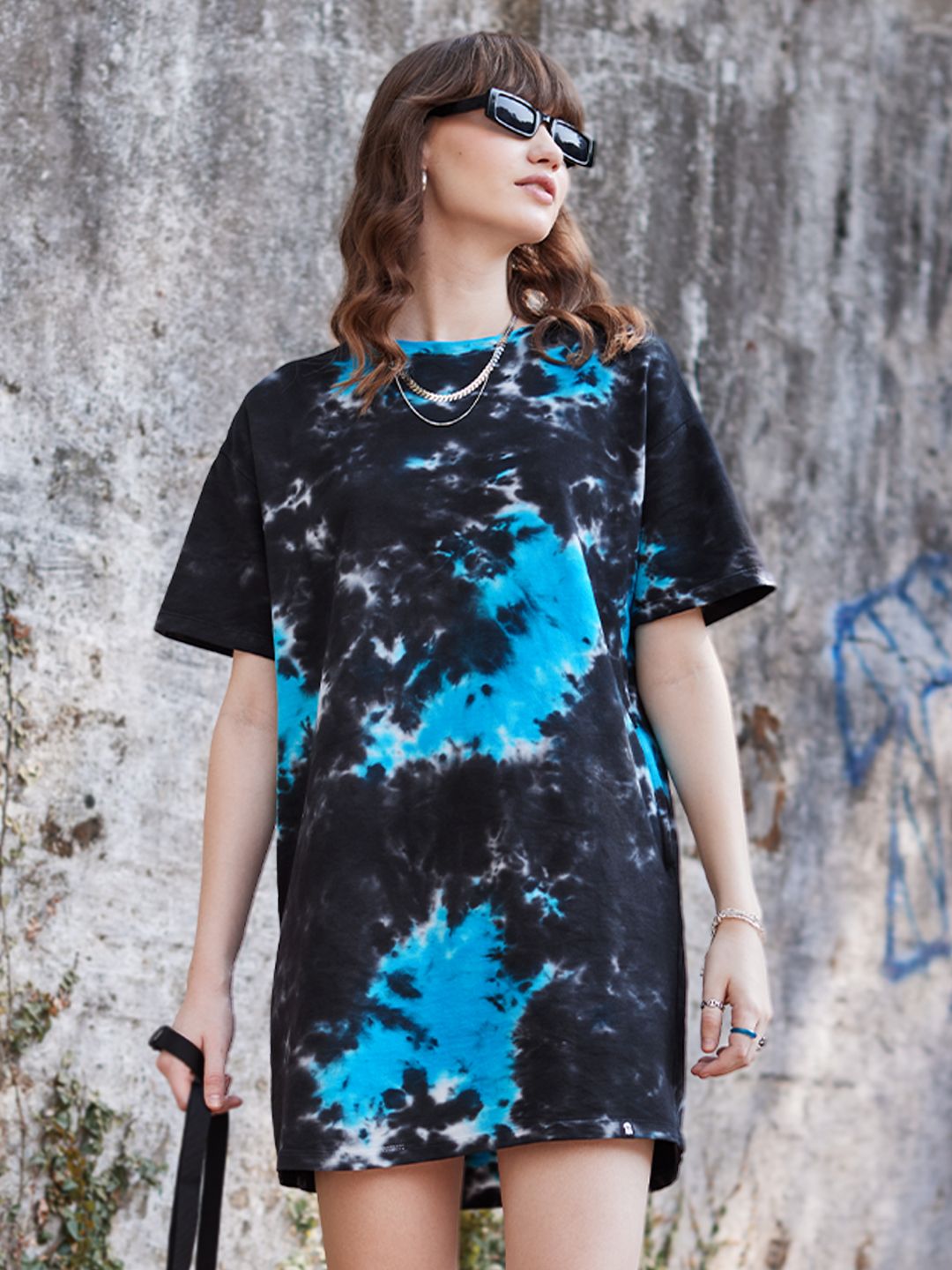 Buy Tie Dye Electric Black Oversized Tshirt Dress oversized black tie dye shirt