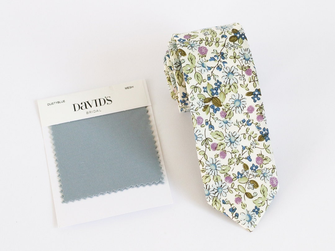 Dusty Blue Floral Wedding Tie, Mens Ties, Vintage Mens Tie, Dusty Blue Bow Tie, Groomsmen Tie dusty blue wedding tie
