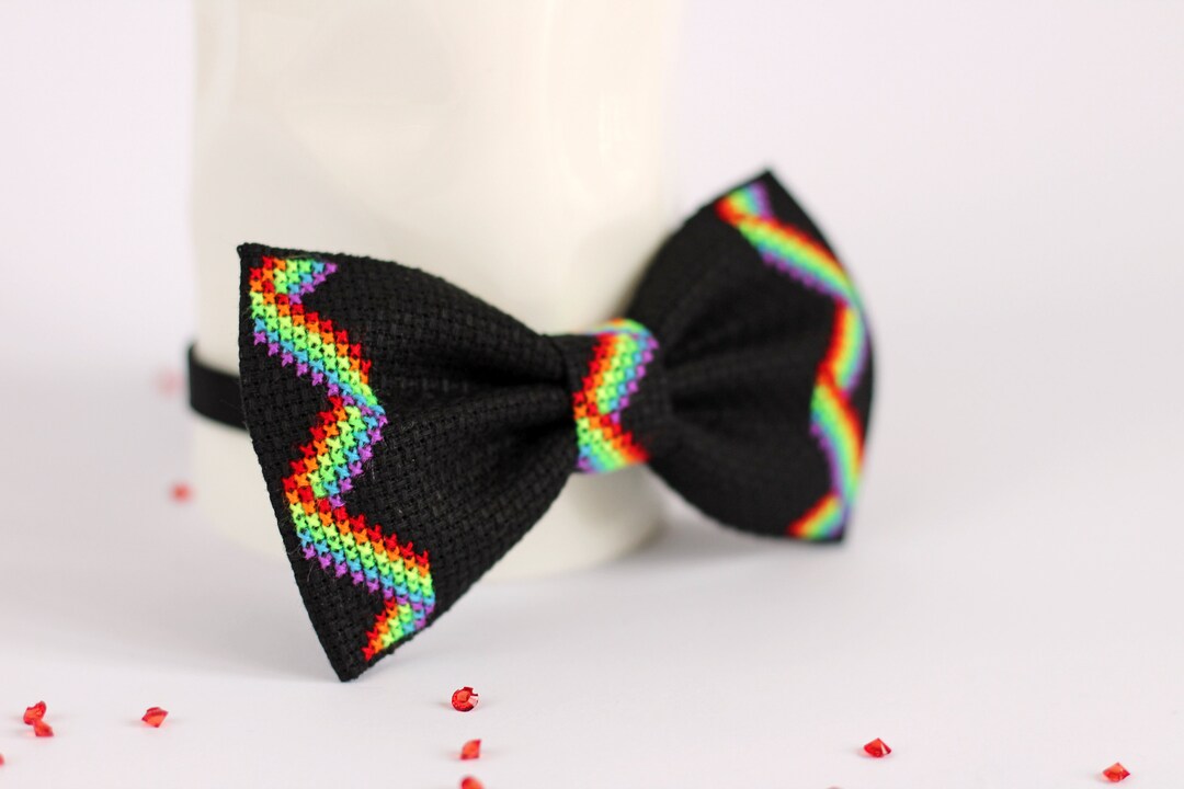 LGBT Bow Tie, Embroidery Rainbow Bow Tie, Handcrafted Pride Flag, Cross Stitch Bows, Gift for My lgbt bow tie