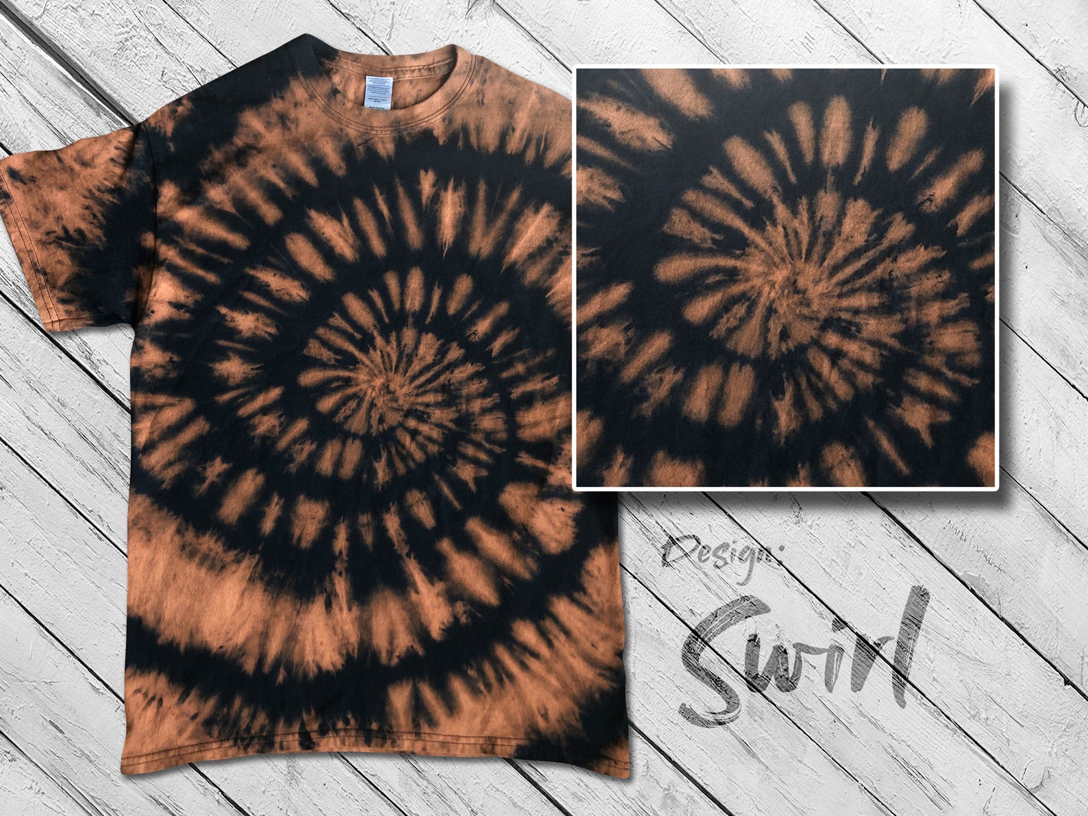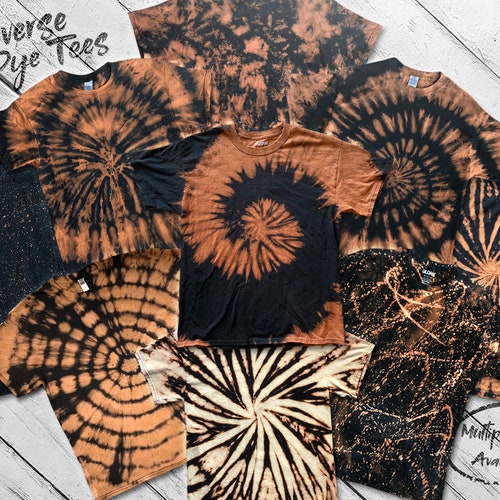 Reverse Tie-dye T-shirts multiple Designs Available, Black and Orange Bleached Tie Dye Apparel reverse tie dye shirts