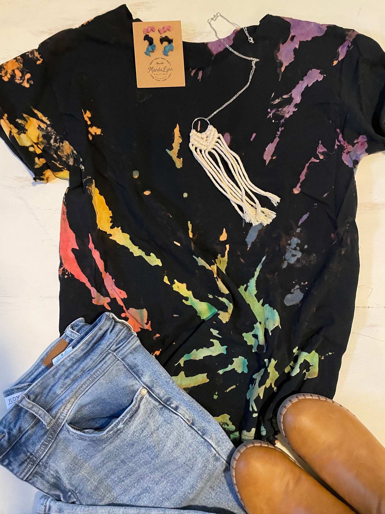 Reverse Tie Dye Shirt, Rainbow Tie Dye Shirt, Tiedye Shirt for Women, Bright Hand Dyed Shirt, Black Tie Dye, Blank Bleached Shirts - Etsy reverse tie dye orange shirt