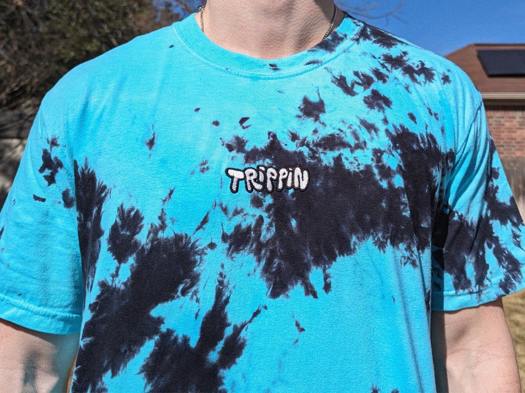 TRIPPIN 2.0 - Tie Dye Embroidered Comfort Colors Psychedelic Trippy Rave Shirt LSD Mushrooms trippin tie dye shirt