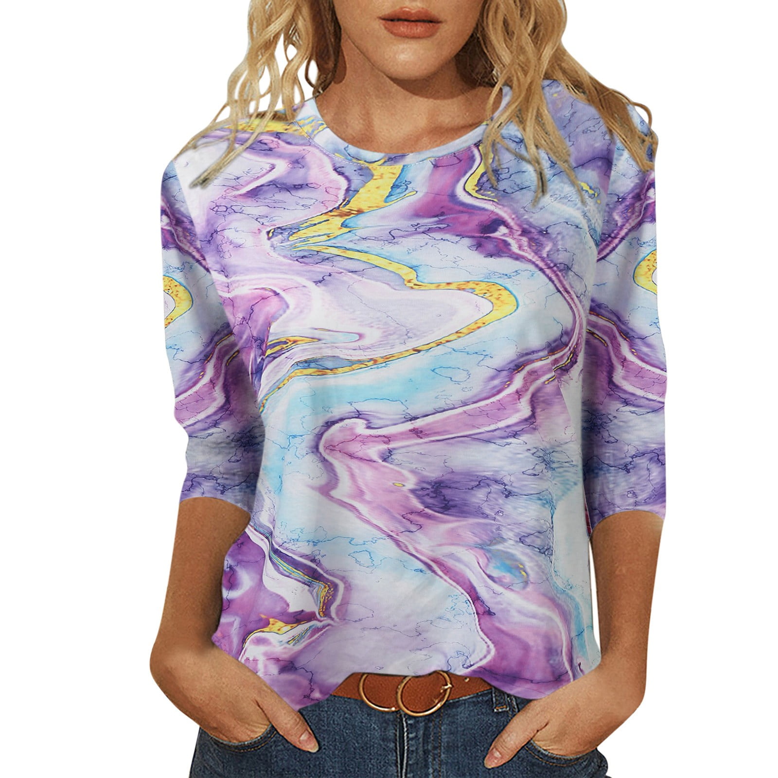 Woment Shirt Long S1eeve T Shirt Tops Tie Dye Print Blue Xl - Walmart.com womens tie t shirt