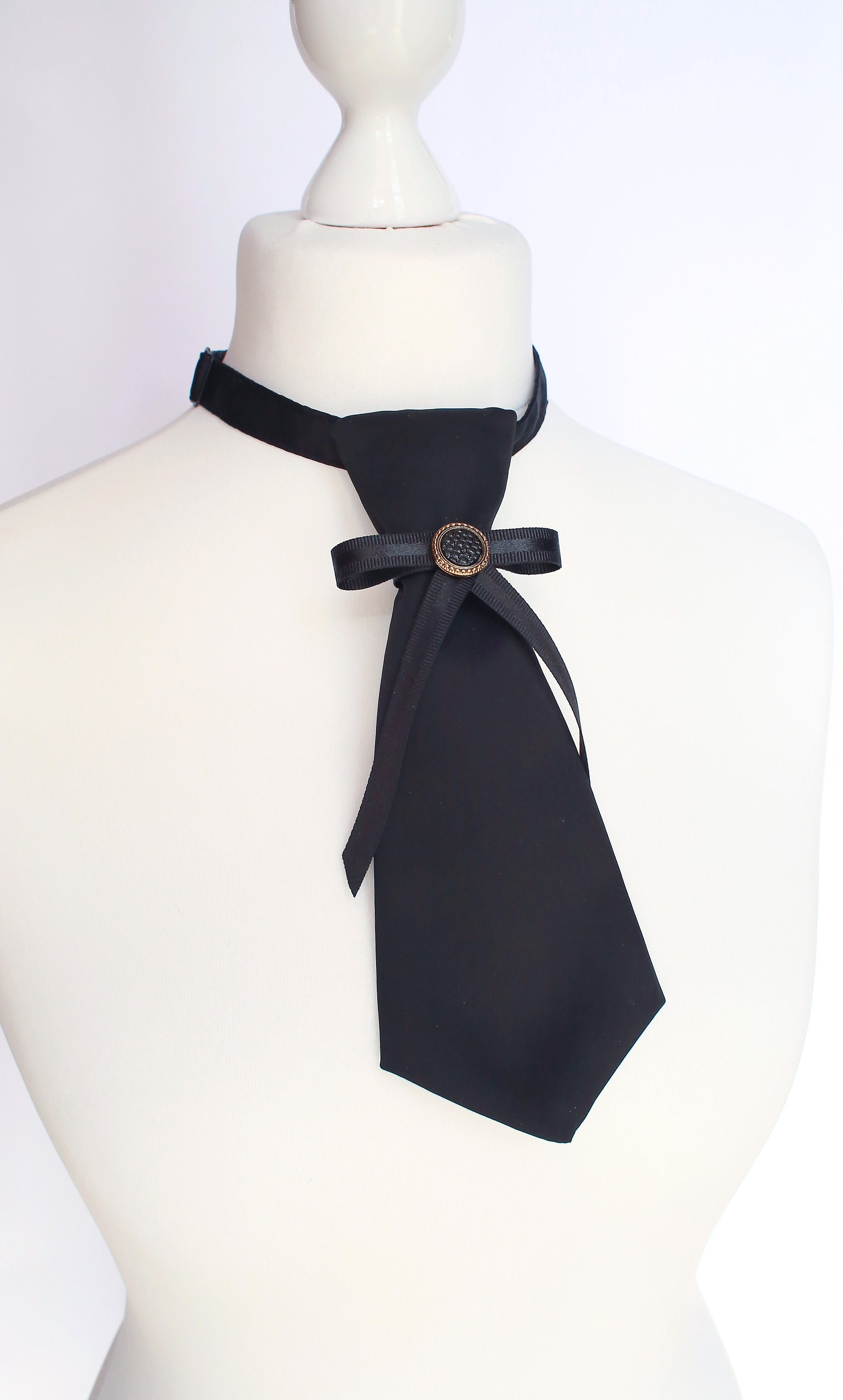 Black ties for women's Skinny tie Necklace with black | Etsy