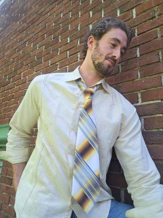Striped Textured Kipper Tie/1970's/The Men's Store/Se⦠- Gem mens kipper ties