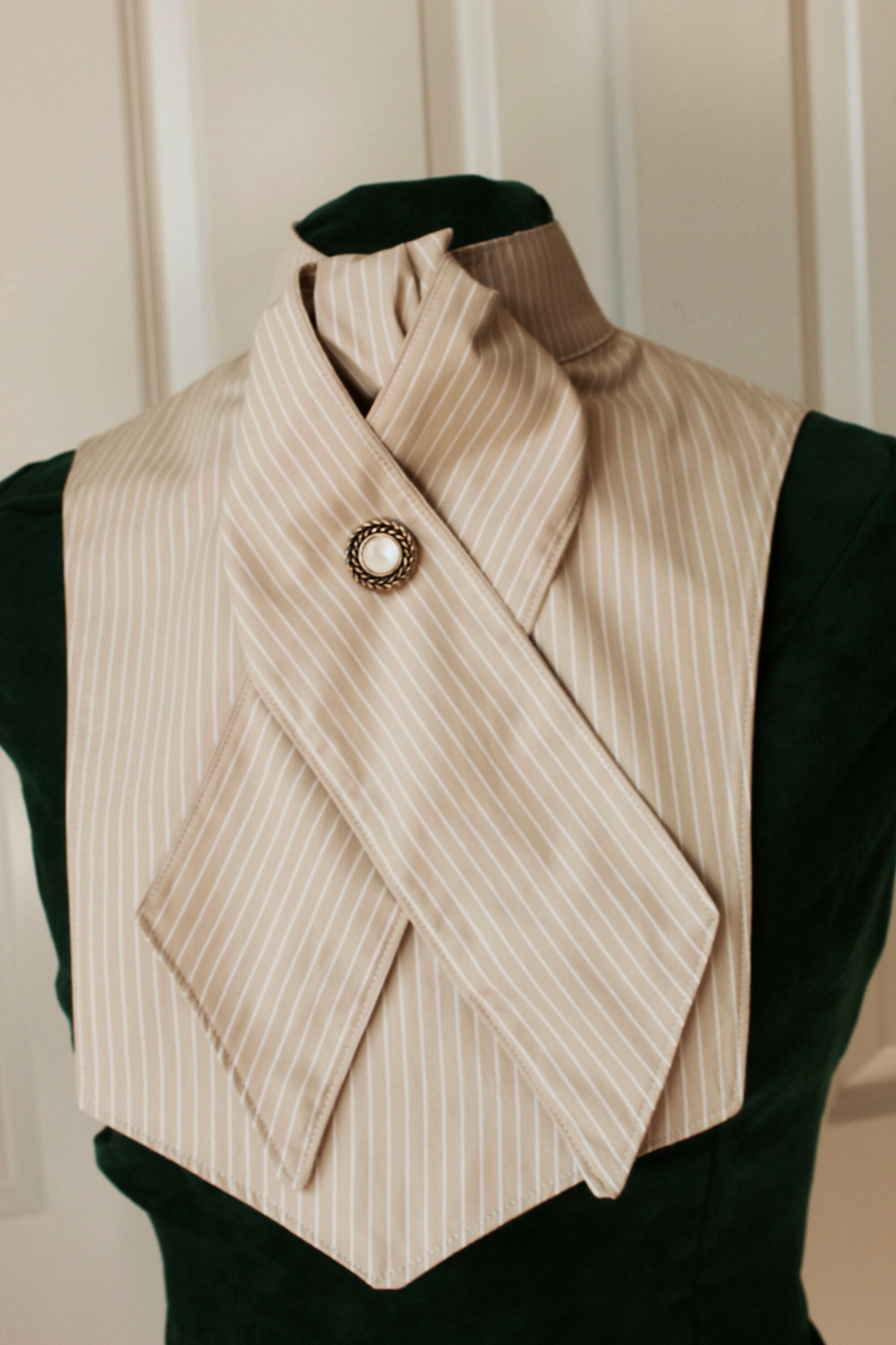 Ready Tied Stock Tie, Beige Stripe, W/ Bib/dickey. Accessory for Dressage, Eventing, Hunting dickey tie