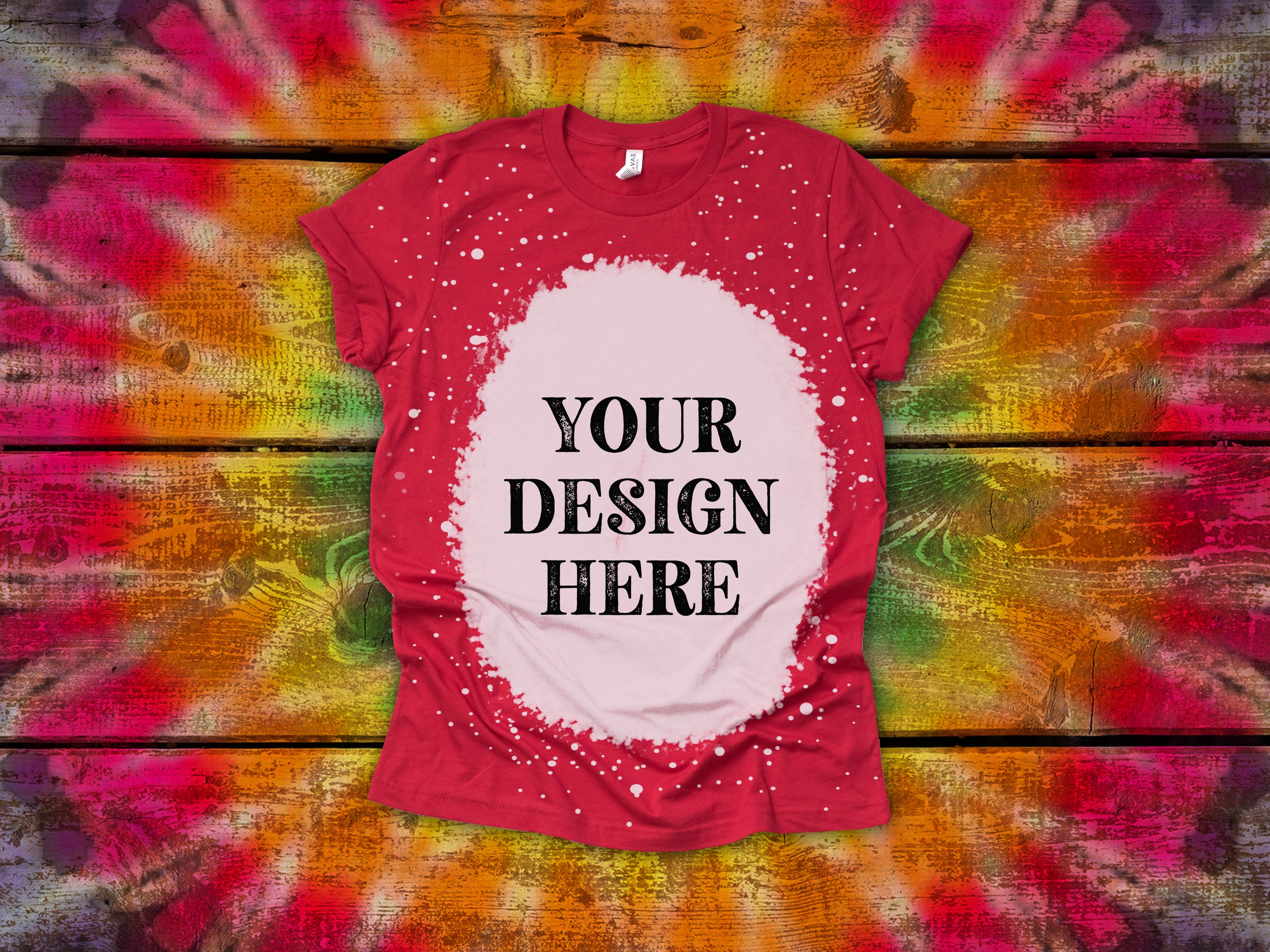 Bella Canvas Red Bleached Shirt Tie Dye Wood Mock Up Shirt | Etsy bella canvas tie dye t shirt