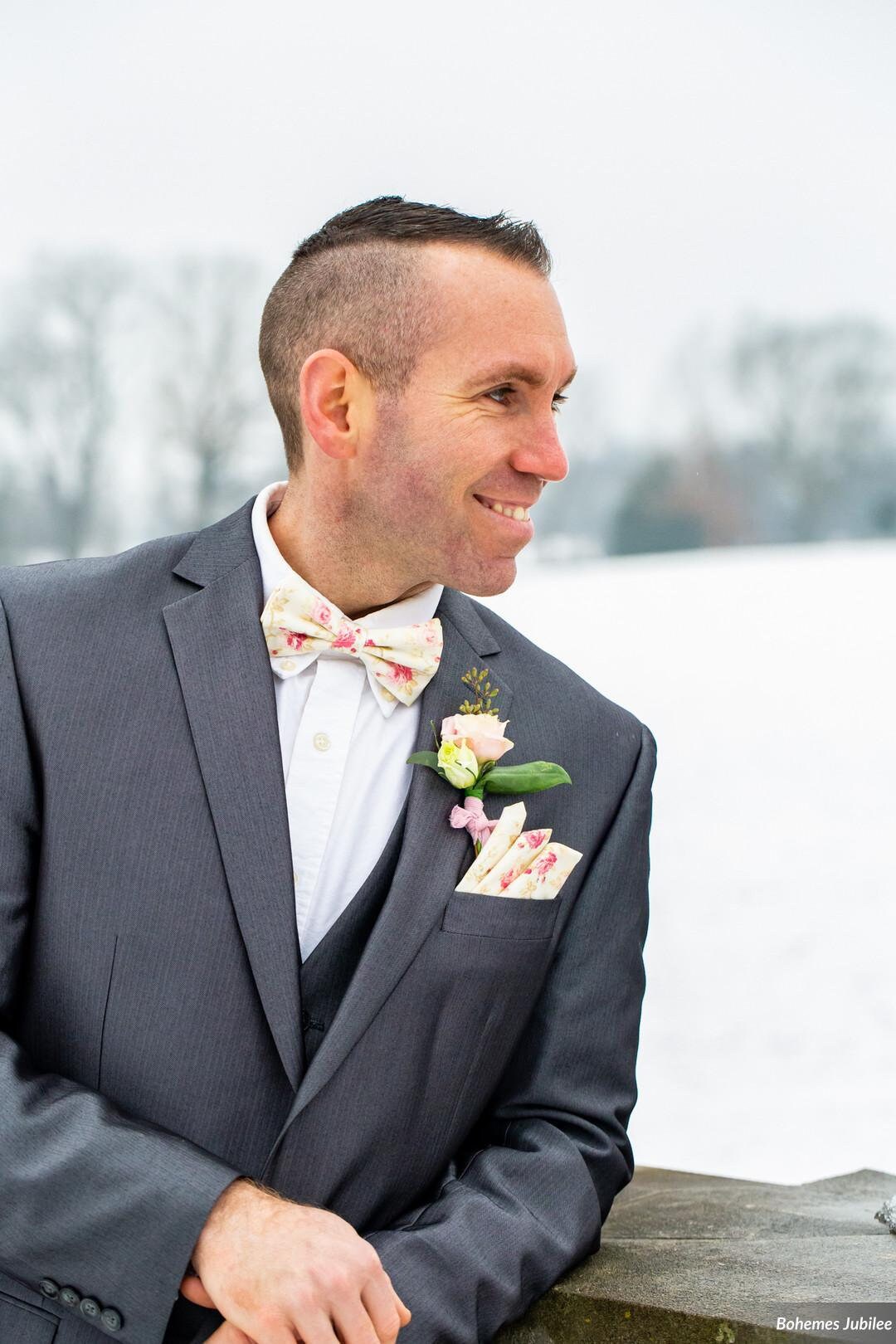 matching bow ties and pocket squares