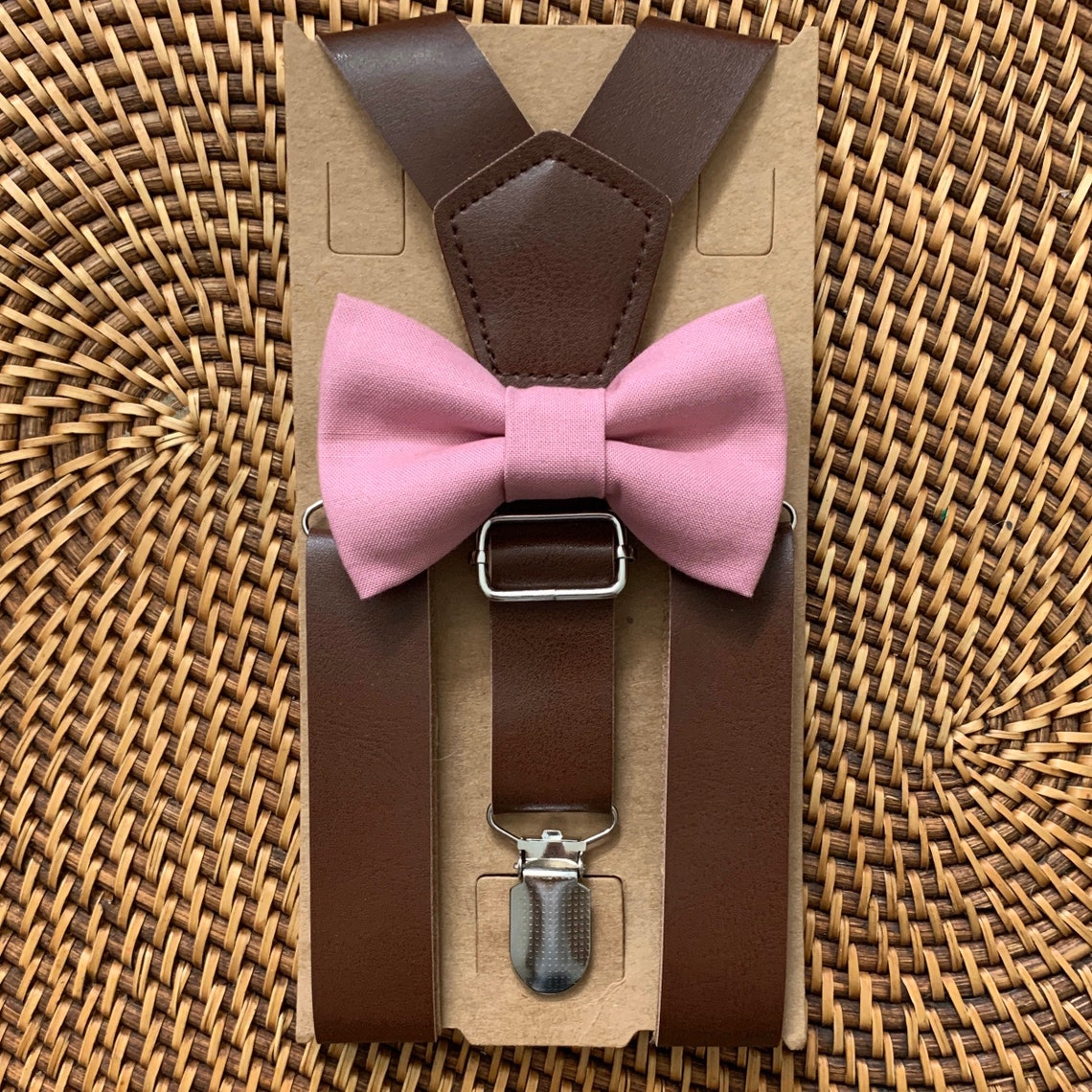 Dusty Rose Bow Tie & Leather Suspenders Wedding Suspenders - Etsy dusty rose tie and suspenders