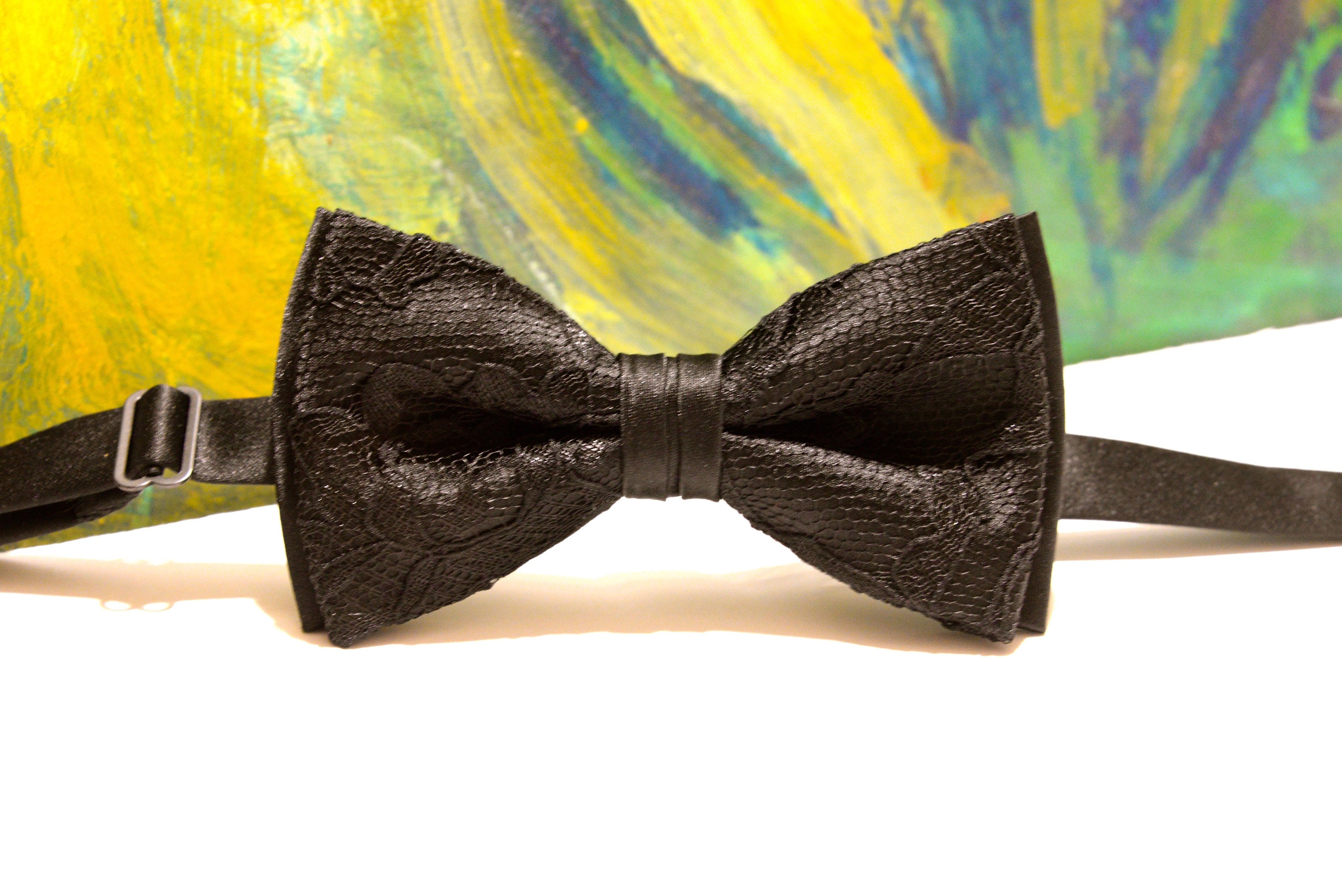 Mens Black and Black Bow Tie Bow Tie Black Wedding BowTie Lace | Etsy myer black bow tie