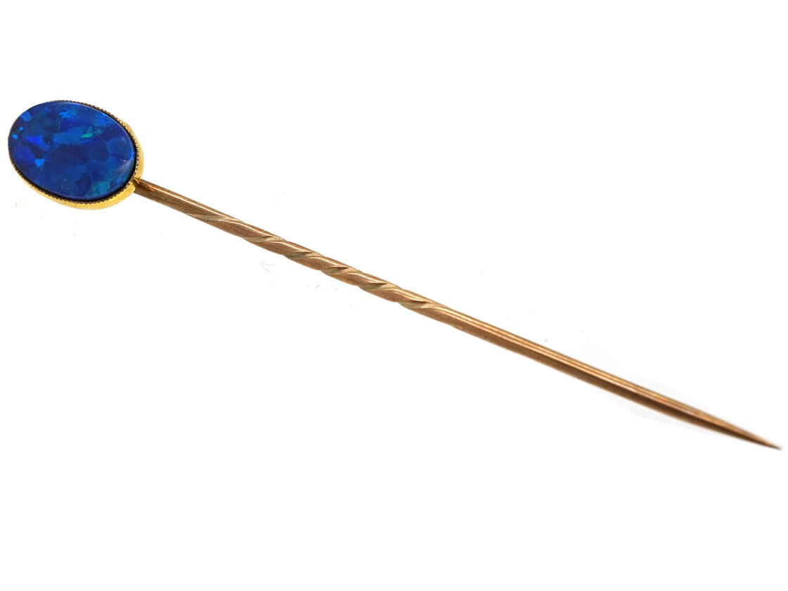 Edwardian 15ct Gold Opal Doublet Tie Pin - The Antique Jewellery Company opal tie pin